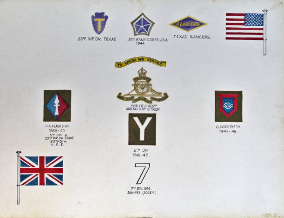My father, Victor Douglas Uggles, on his retirement, began painting his war story, particularly about what happened after his vision at sixteen that he would be conscripted and the harrowing tales of his experiences in the first years of World War II.  In over 100 watercolour paintings he tells the story of France and Belgium and particularly the evacuation at Dunkirk.  He was not one of the soldiers sent back to England but spent the rest of the war within the Fifth British Division (he referred to it as ‘Y’ Division), travelling in many countries including Africa, Italy and the Middle East.  They are famously known as ‘The GlobeTrotters’.